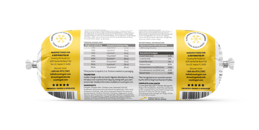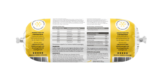 Chicken Dog Food 1.5lb Frozen Roll - Single RollRegular price $ 13.95 USDRegular priceUnit price / per$ 11.95 USDSale price $ 13.95 USD